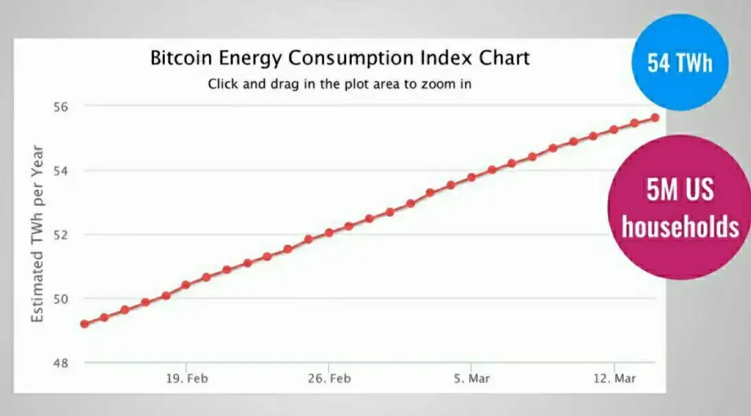In fact, as per the Digiconomist’s Bitcoin Energy Consumption Index, the energy consumed by Bitcoin miners alone has jumped from 54 TWh on December 2019 to 77 TWh in February 2020.
