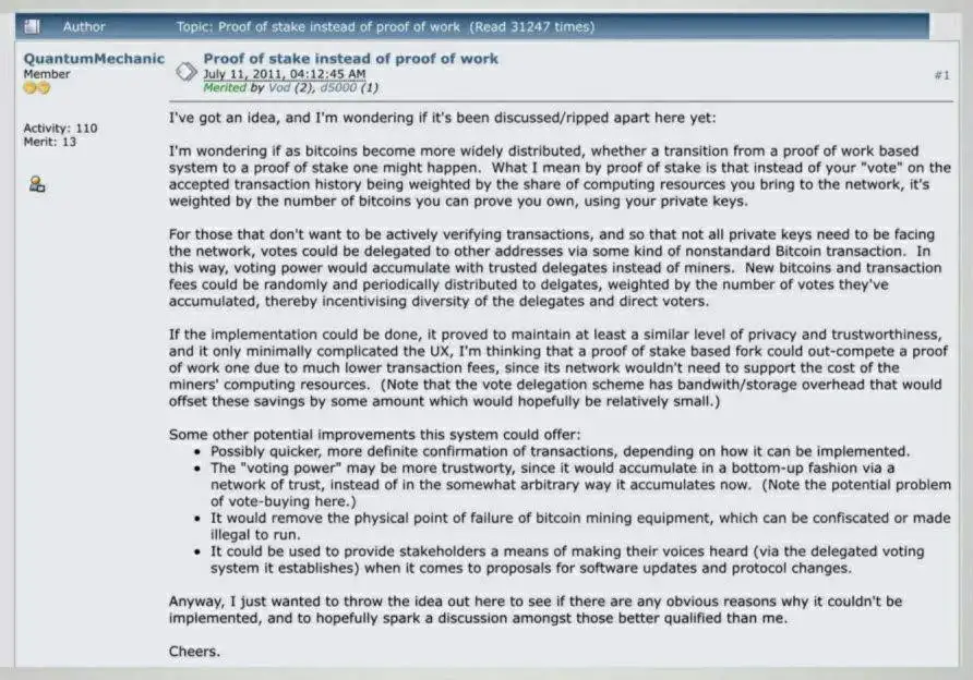 Well quite, fortunately, on the 11th of July 2011, QuantumMechanic, a Bitcointalk forum user amazed the world with a new proposition called Proof of Stake. The proposition was really simple yet capable enough to eliminate the demerits of Proof Of Work with incredible efficiency.